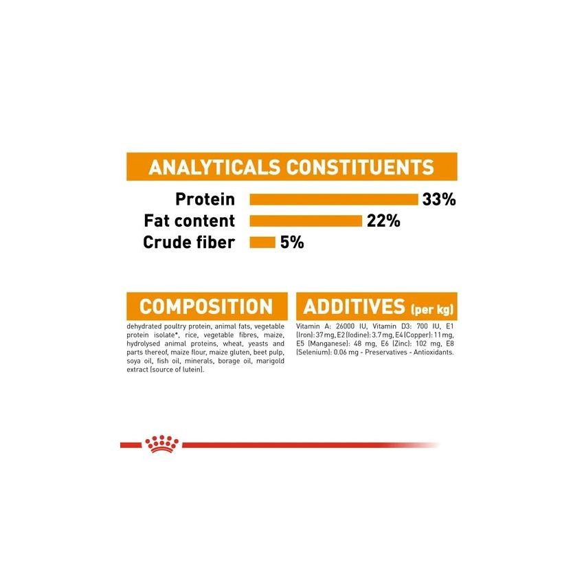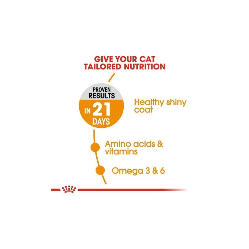 The exclusive use of Hair And Skin Care brings a significant improvement in coat shine after 21 days*. *Royal Canin internal study, 2006.