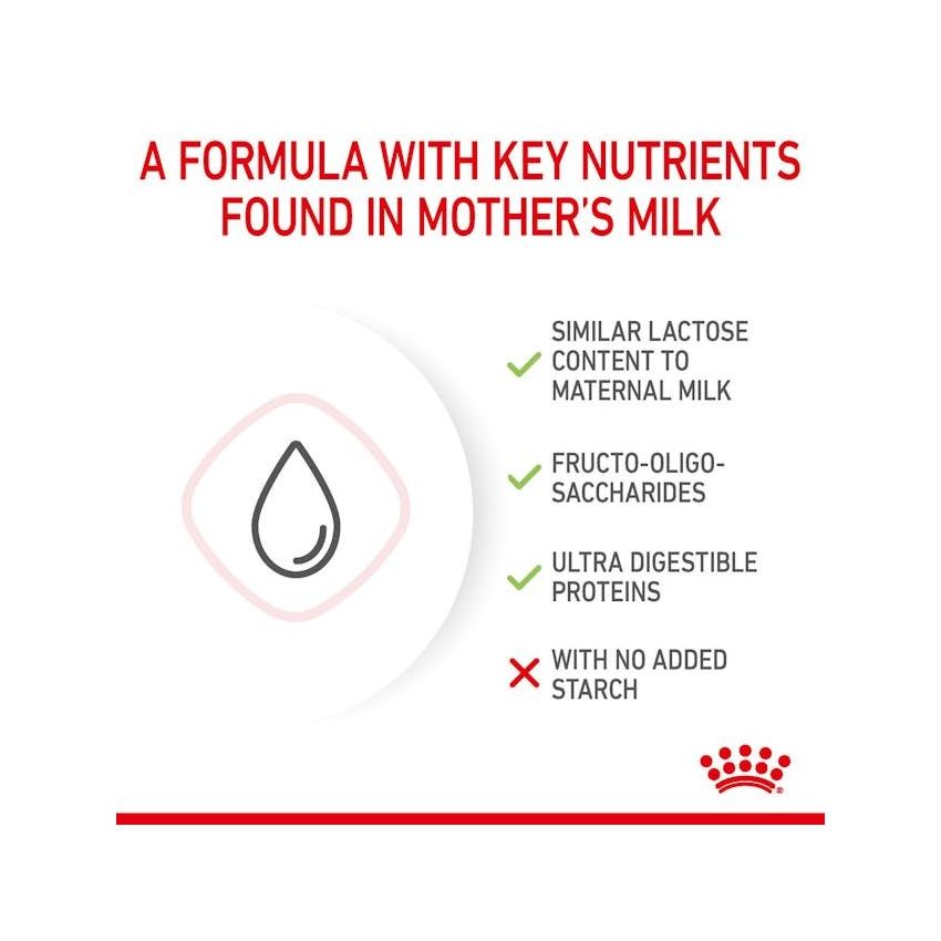Suitable for first age kittens from birth to weaning, ROYAL CANIN® Babycat Milk is specially formulated to feed kittens in case of insufficiency or poor quality of the mother’s milk. Its formulation is as close as possible to the mother’s milk. The Babycat Milk formula is easy to reconstitute, dissolves instantly, creating a totally homogeneous milk replacer. ROYAL CANIN® Babycat Milk is enriched with DHA – an essential Omega-3 fatty acid that is naturally present in maternal milk and plays a role in supporting your kitten’s brain development. It is recommended that you refer to the on-pack feeding guide to make sure your kitten gets the appropriate volume for optimal support.