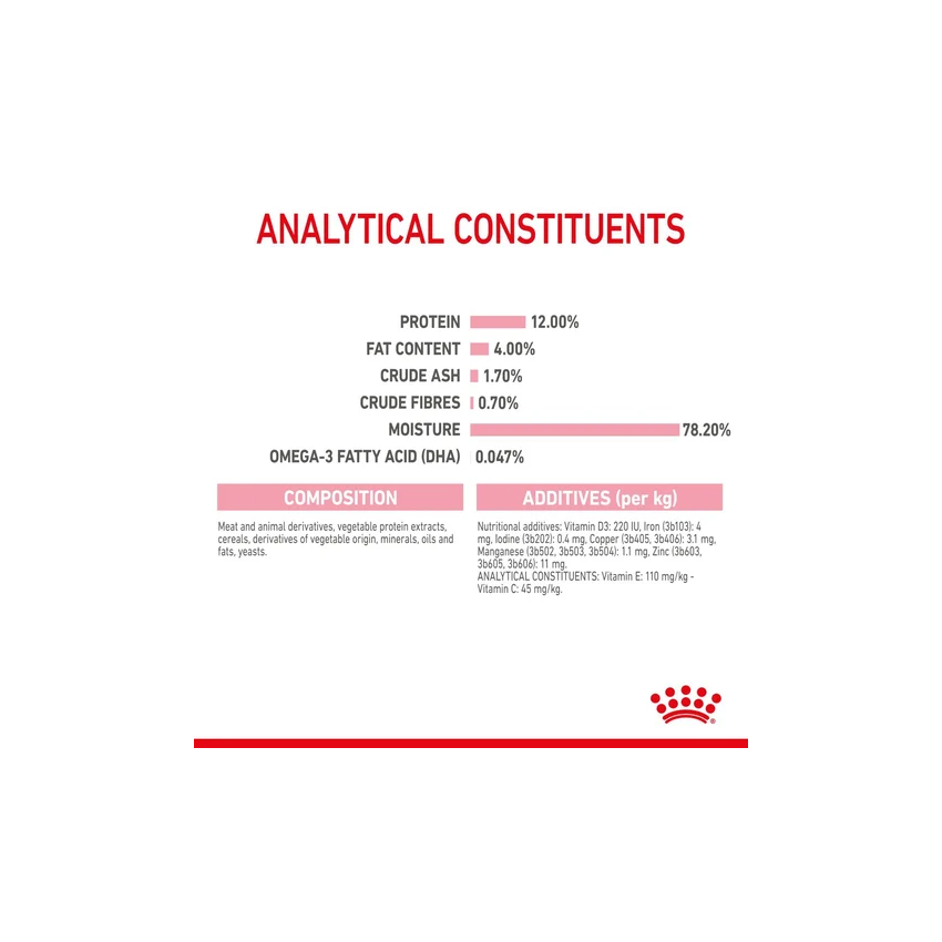Giving your kitten the best start in life all begins with the right nutrition. Providing it with the essential nutrients it needs will properly support your kitten's development and growth at critical stages and beyond. Weaning kittens from their mother's milk can be difficult - particularly if the food isn't specifically tailored to your kitten's needs and palatability. That's why ROYAL CANIN® Kitten Instinctive in Gravy is formulated to match the optimal nutritional profile instinctively preferred by kittens. Feeding your kitten a palatable diet that takes taste, scent and texture into account will lead to long-term, instinctive acceptance of the nutritious food that you provide. ROYAL CANIN® Kitten Instinctive in Gravy provides all the essential nutrients needed to sustain high energy requirements and support bone strengthening as well as good overall health maintenance. During the second growth stage (4-12 months), your kitten's immune system will not be fully developed yet. ROYAL CANIN Kitten Instinctive helps strengthen the natural body defences of your kitten with a complex of antioxidants such as vitamin E, vitamin C, taurine and lutein. ROYAL CANIN® Kitten Instinctive in Gravy is specifically designed for easy chewing, and it's also suitable to feed to mother cats. To cater to each cat's individual preferences, ROYAL CANIN® Kitten Instinctive is also available as wet food in succulent jelly or a soft and tasty loaf.