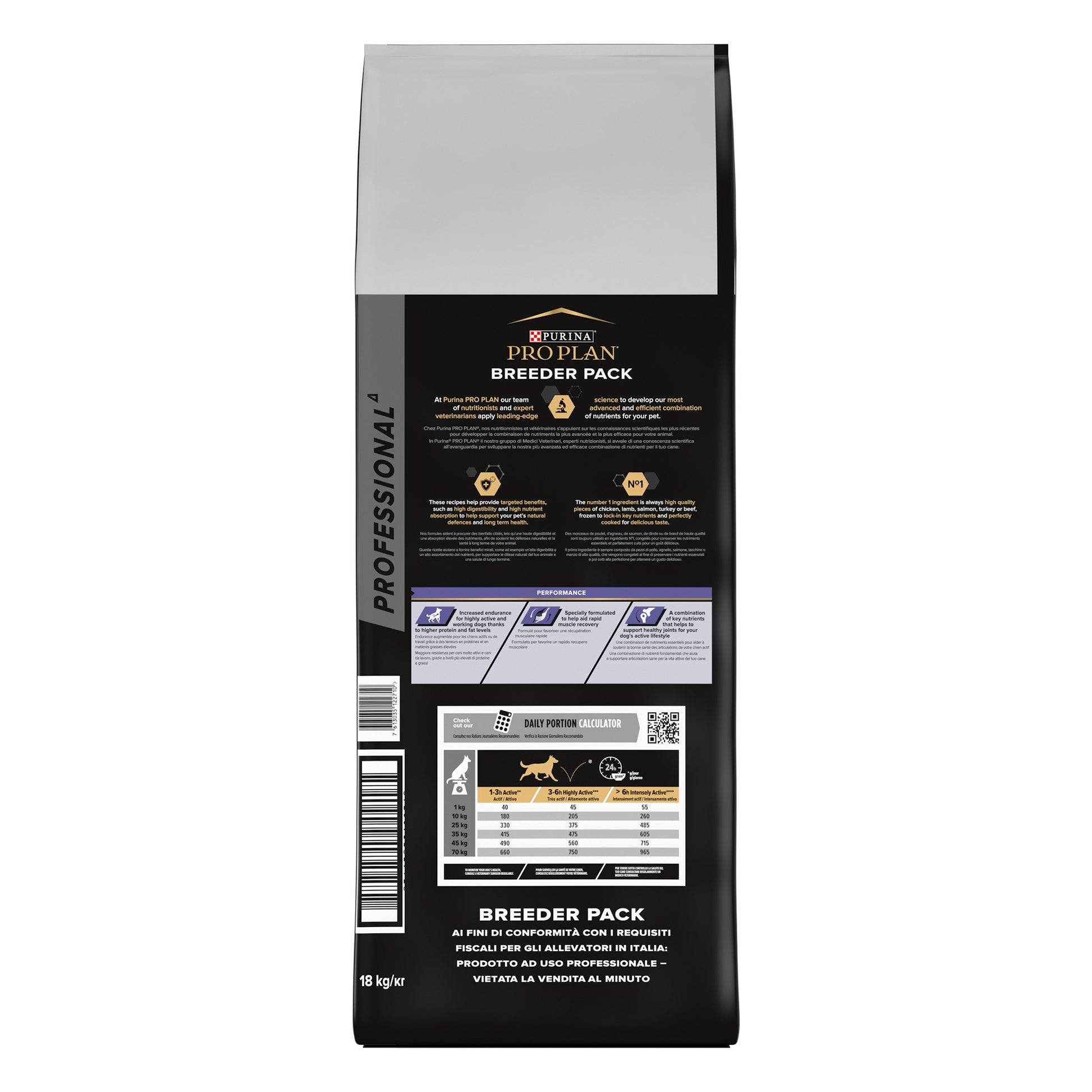 | •Specially formulated for sustained performance and endurance in highly active and working dogs. •High levels of protein (31%) and fat (21%) support prolonged energy and stamina. •Rapid Muscle Recovery, supports faster muscle repair and growth after intense activity. •High-quality chicken protein helps nourish and rebuild lean muscle tissue. •Supports Joint Health,tailored nutrition helps maintain mobility and joint function in aging and active dogs. •Chicken is the #1 ingredient, ensuring high palatability and digestibility. •Includes dried poultry protein, dried egg, and fish oil for additional protein and essential fatty acids. |