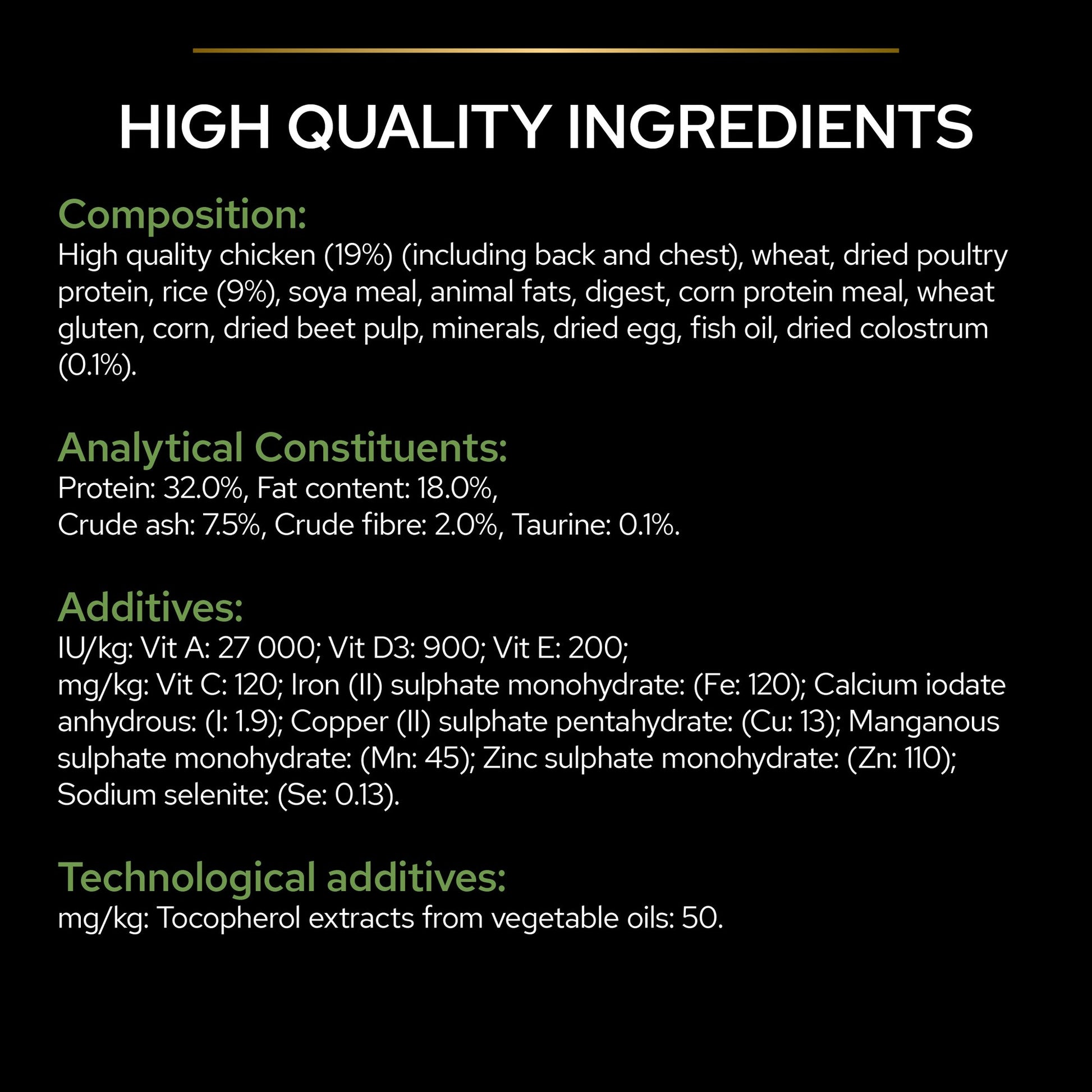 • High-quality chicken #1 ingredient for tasty, protein-packed meals. • Contains Colostrum to boost immunity by up to 50% for a strong start. • Supports gut health to help prevent loose stools. • Promotes healthy growth & long-term well-being. • Supports healthy joints for active pups. • Total dental care with vitamin D, minerals & omega-3 (0.3%) • Tailored for large athletic breeds (25kg+) up to 24 months. • Suitable for gestating & lactating mother dogs. • No added colorants — pure, balanced nutrition. |