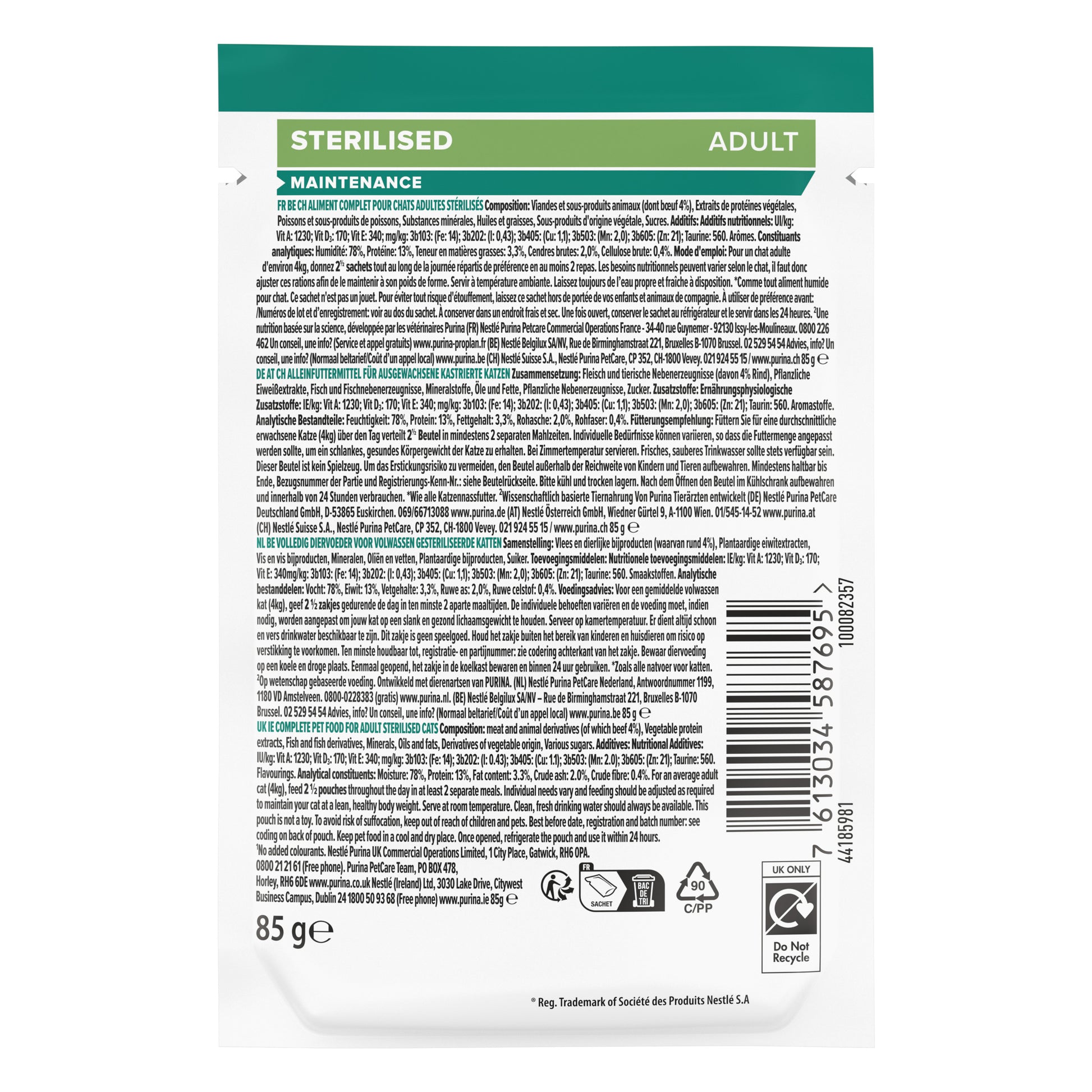 Pro Plan Sterilised Wet Cat Food, Beef in Gravy, Multipack 10x 85g