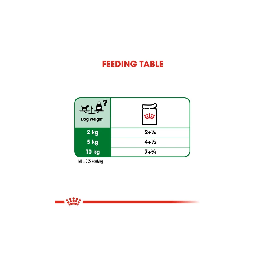 ROYAL CANIN® Mini Adult Morsels In Gravy is a nutritionally complete and balanced wet food diet specially designed to meet your small dog’s particular needs and support them throughout their adult years. This diet is suitable for small dogs that weigh up to 10kg and are over 10 months old. This specialised formula is designed to help meet your dog’s energy needs and maintain their ideal weight with an adapted calorie content. These little bundles of energy are always on the go, which means they need a diet that supports their active lifestyle. This diet contains a mix of nutrients to help your small dog maintain strong and healthy bones. No matter what breed your dog is, their coat is their crowning glory. Enriched with a blend of nutrients, this food helps keep your dog’s skin healthy and their coat glossy and gorgeous. This specially crafted formula also has a blend of vitamins and highly digestible nutrients to help support maximal absorption and overall health. ROYAL CANIN® Mini Adult Morsels In Gravy is also available in a dry kibble: ROYAL CANIN® Mini Adult. Mixing wet and dry food brings variety to your dog’s diet, making their mealtimes more interesting and engaging.