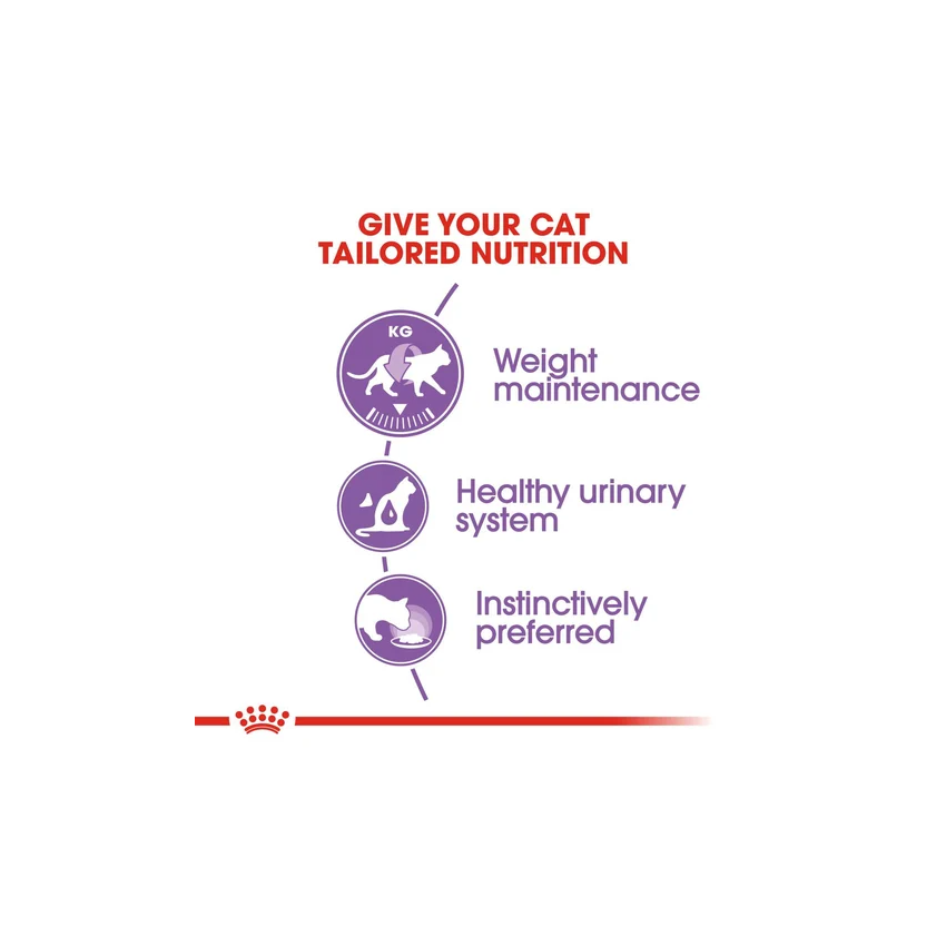 Sterilised cats have different requirements compared to cats that haven't been neutered or spayed. That's why ROYAL CANIN® Sterilised in Gravy is specially formulated with the nutritional needs of your neutered adult cat in mind. With a controlled energy content and a moderate level of fat, ROYAL CANIN® Sterilised in Gravy helps to limit the chances of your cat gaining an excess weight; particularly when served in adequate daily rations. ROYAL CANIN® Sterilised in Gravy is formulated to match the optimal nutritional profile instinctively preferred by adult cats - to ensure that they consume the nutrients they need to maintain good overall health. ROYAL CANIN® Sterilised in Gravy also contains a carefully-considered balance of minerals that helps to support the health of your cat's urinary system. To cater to each cat's individual preferences, ROYAL CANIN® Sterilised is also available as wet food in a soft and tasty loaf, or delicious gravy, as well as dry food in a tasty and crunchy kibble. If you're considering mixed feeding, simply follow our feeding guidelines to ensure your cat gets an accurate amount of both wet and dry food for optimal benefit.