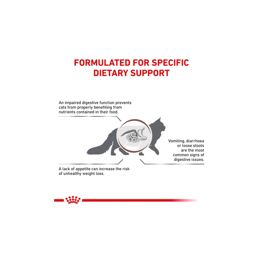 High energy content, 13% more than Feline Gastrointestinal Moderate Calorie dry, to reduce meal volume and decrease intestinal load.