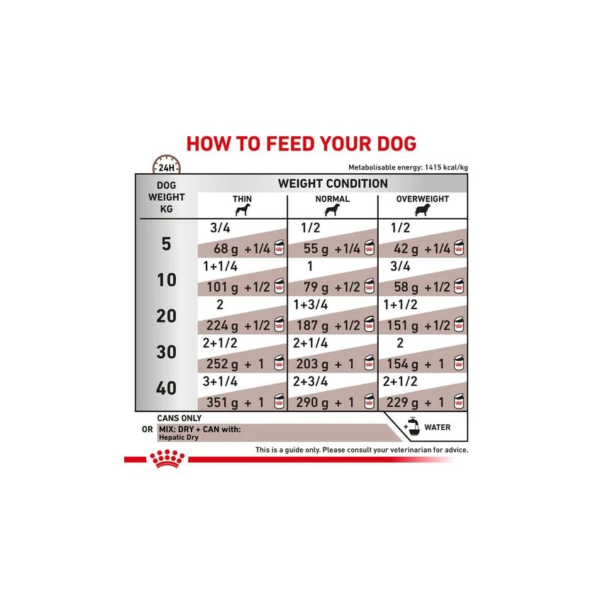 Adapted energy content to reduce meal volume and decrease intestinal load.